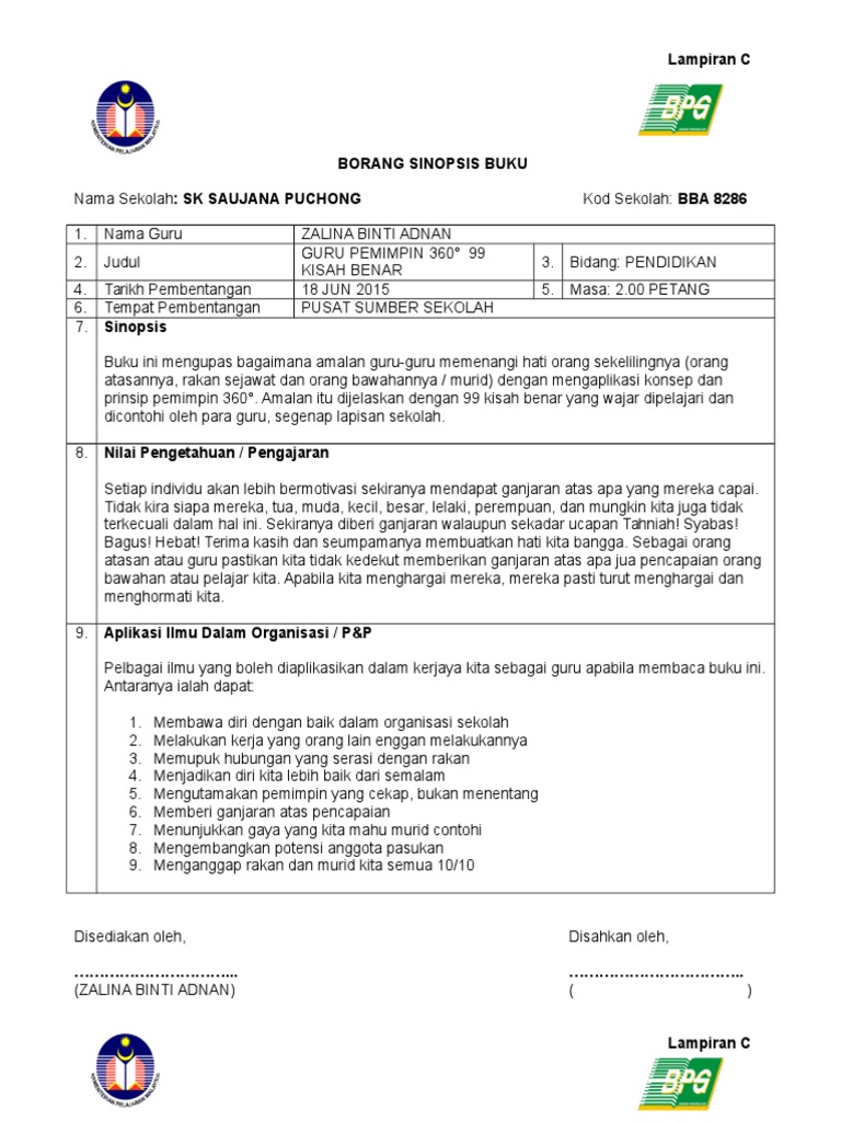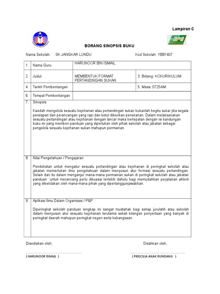 Lampiran c borang sinopsis buku nama sekolah: sinopsis. Bacaan ilmiah sinopsis buku ladap 2020.